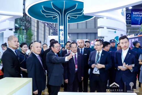 ▲中物協(xié)沈建忠會(huì)長(zhǎng)(前排左三)與其他重要領(lǐng)導(dǎo)參觀雅生活展位