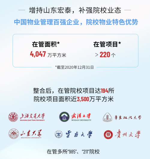 截至2021年6月30日,雅生活集團(tuán)在管面積及合約面積分別為4.2億平方米及5.8億平方米。含期后收購山東宏泰,雅生活的在管面積及合約面積規(guī)模分別超過4.6億平方米及6.2億平方米。