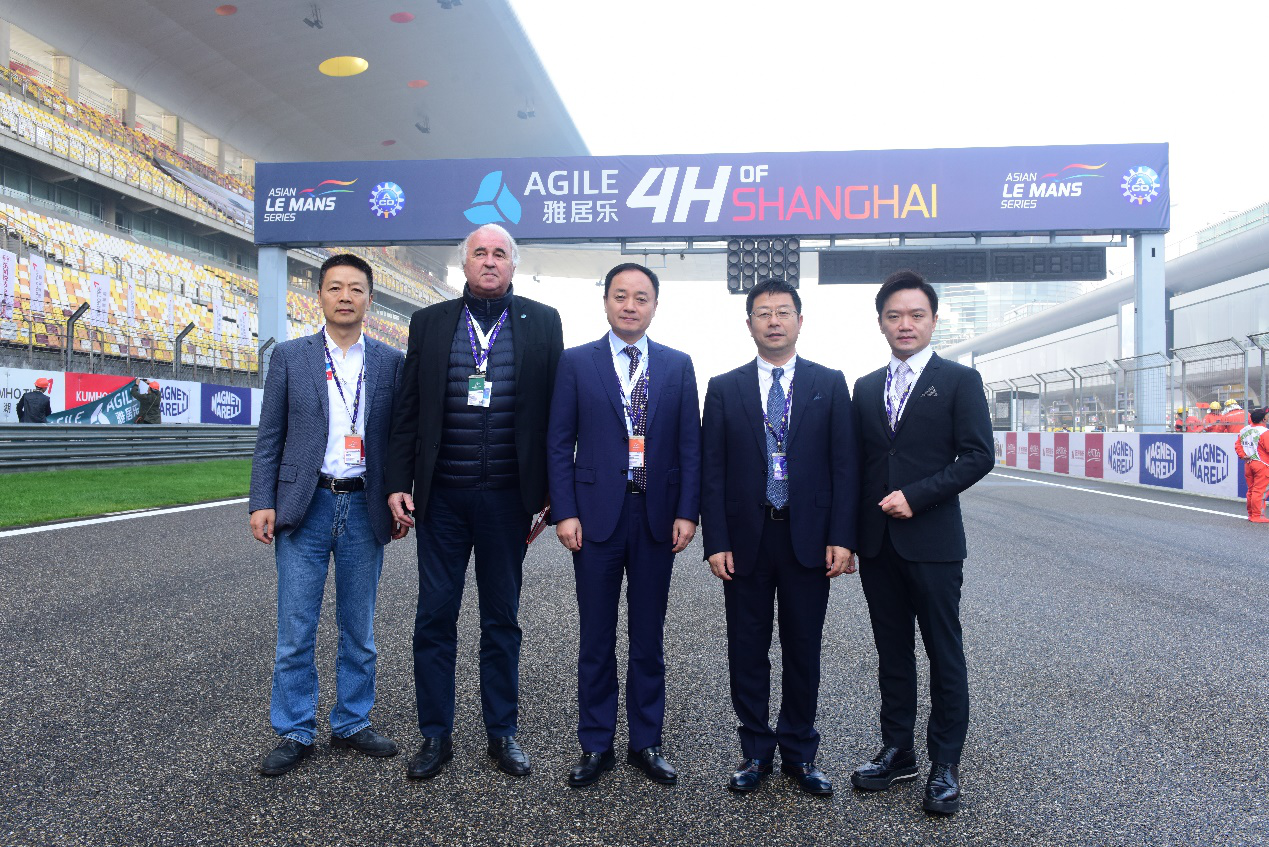 ??▲賽前合影 左起:亞洲(勒芒)汽車運(yùn)動(dòng)投 資基金管理有限公司 CEO 曹建偉、ACO(法國(guó)西方汽車俱樂(lè)部)主席特別顧問(wèn) Frederic Henry-Biabaud、雅居樂(lè)集團(tuán)控股有限公司副總裁、地產(chǎn)集團(tuán)總裁兼商業(yè)管理集團(tuán)董事長(zhǎng) 王海洋、上海力盛賽車文化股份有限公司董事長(zhǎng) 夏青、雅居樂(lè)地產(chǎn)集團(tuán)副總裁兼產(chǎn)城發(fā)展中心總經(jīng)理 阮家聲
